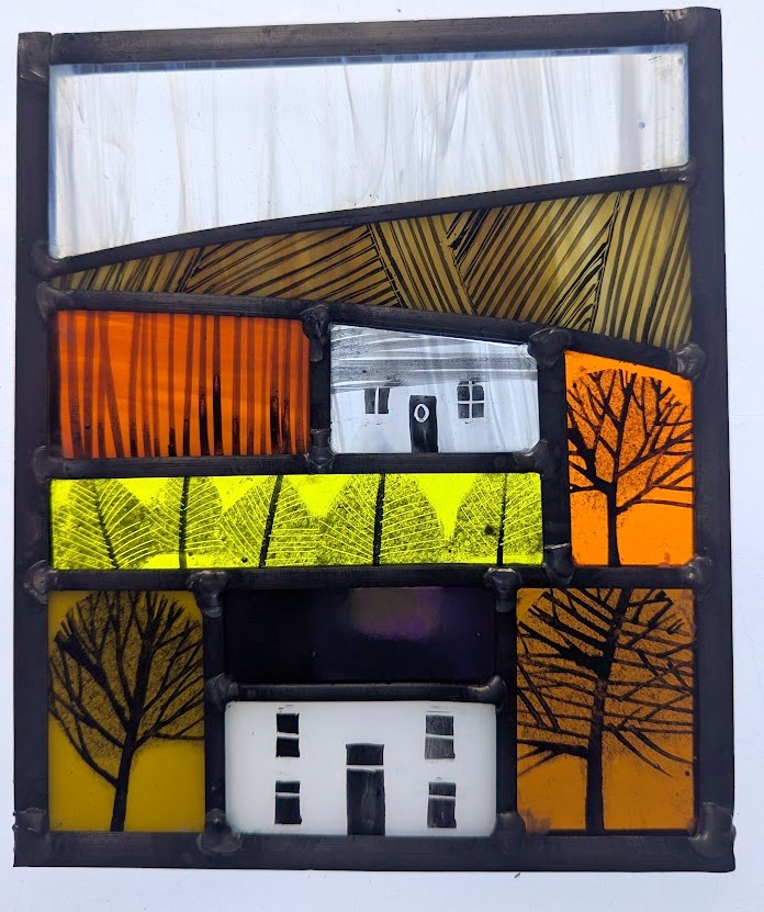 Maureen makes affordable pieces of free hanging , leaded glass using traditional methods sometimes with a contemporary twist. Recently she has been using silver stain and gold leaf…..who doesn’t love a bit of bling?
