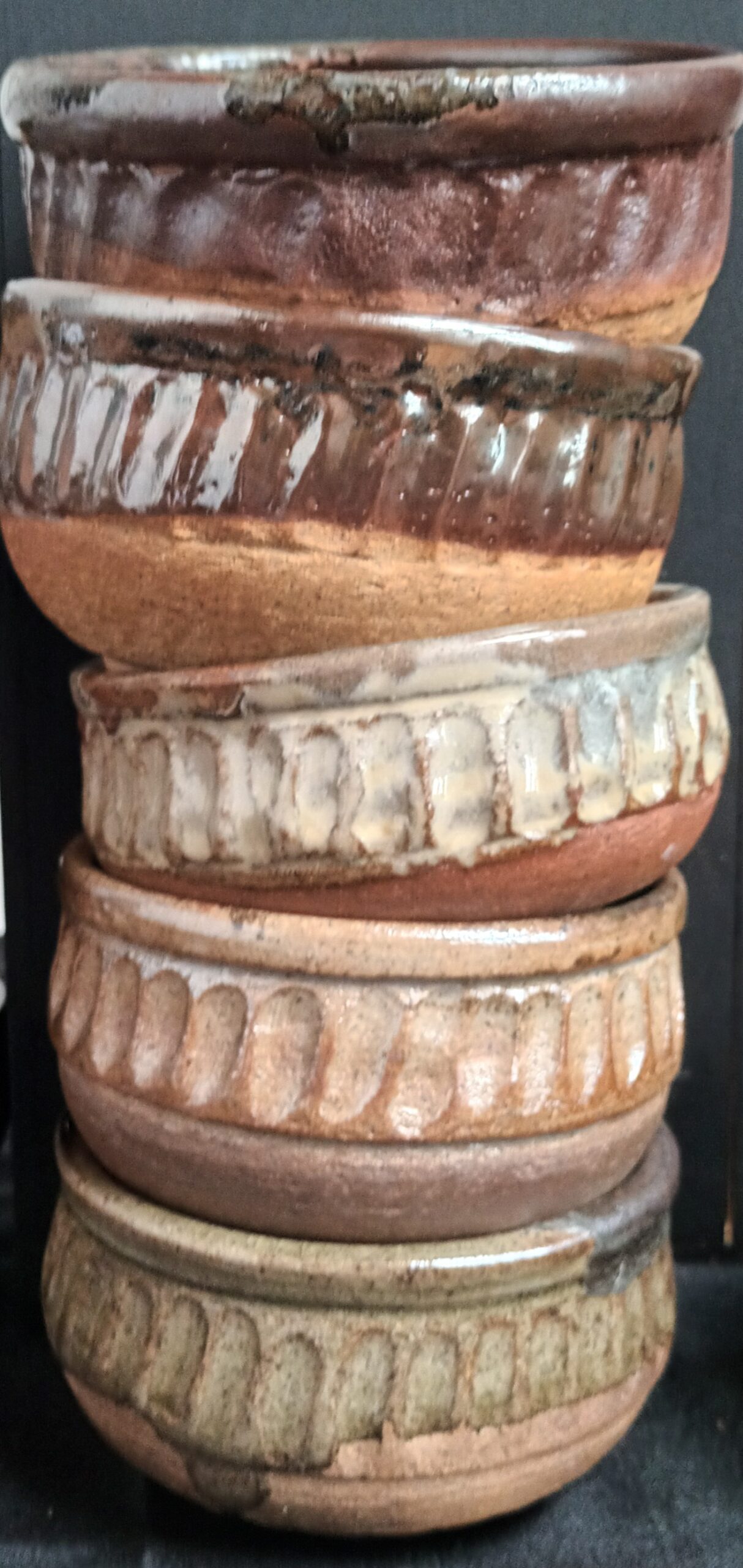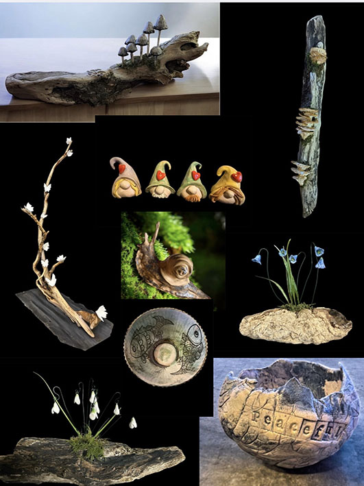 I make hand-built pots through coiling or using moulds. These I have made myself from found natural objects or shapes I like. I have had three joint exhibitions with other artists.