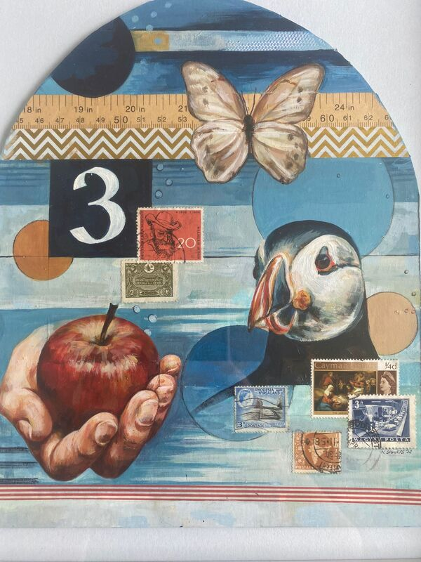 My work is inspired by colour combinations that I find in all sorts of places, sometimes gentle harmonies or more lively contrasts. When I paint compositions featuring organic elements, I often arrange them alongside more geometric shapes to create visual contrast. I like to paint mementos that may be of personal significance, to imply an evocative narrative or complete a colour array. Studio is open on Sunday 3rd May from 11 till 4pm. Visitors are accepted on request. You can also see my work at the Monifieth Art Market (Venue 2).